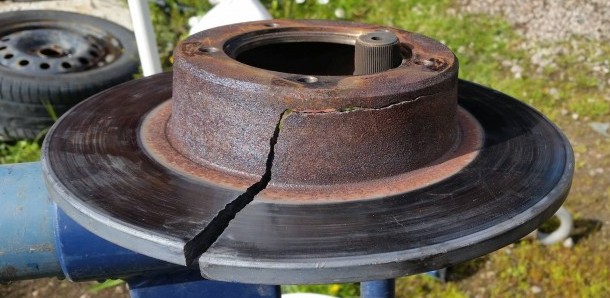 – Bromsskivan klöv sig längs med navet och rakt ut!
