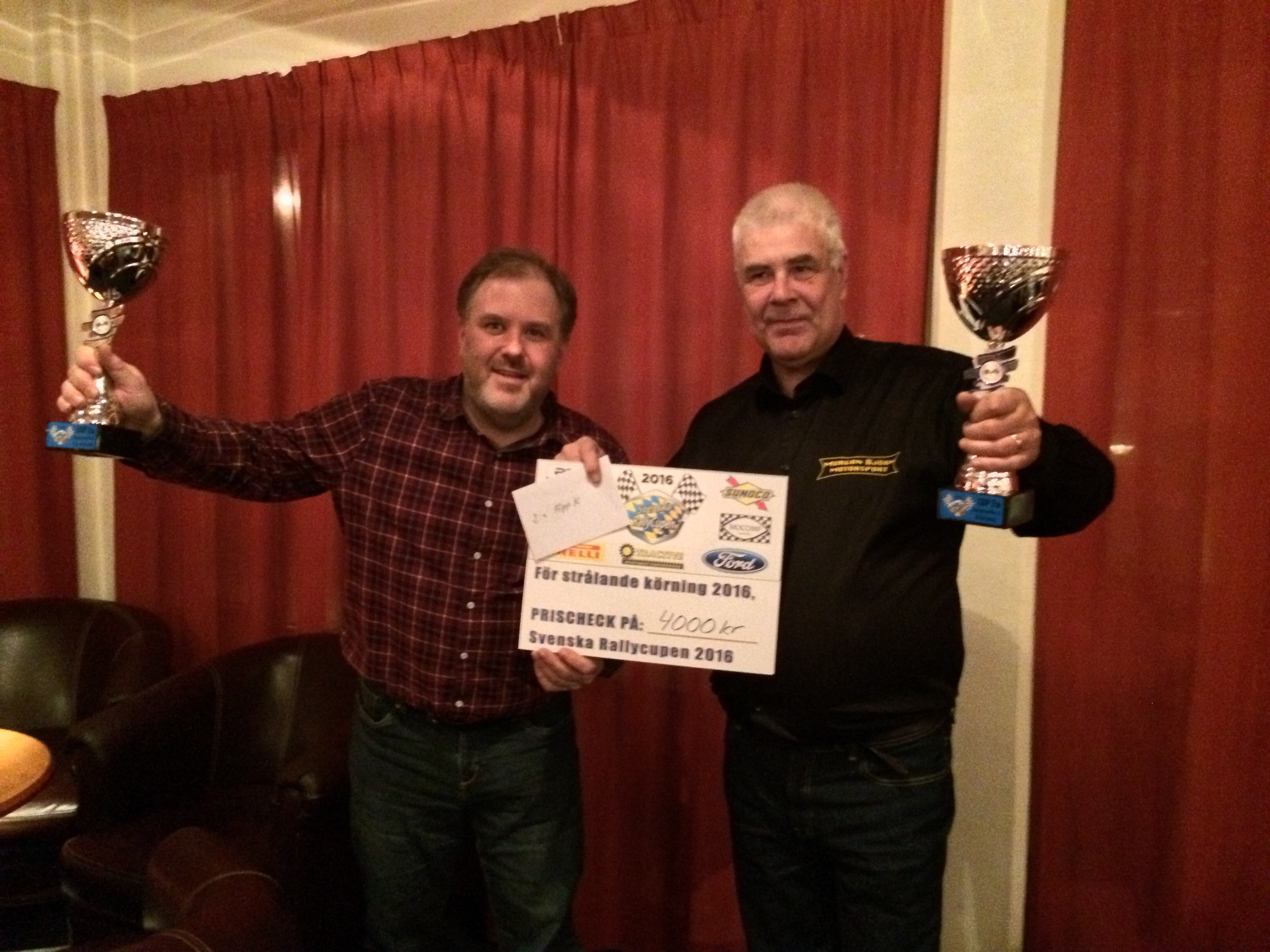 På plats i Katrineholm och Safiren fick vi i kväll ta emot pris som segrare i klass 7-2 och tvåa totalt i appendix K. Än en gång riktar vi ett stort tack till sponsorer, samarbetspartners, all härlig rallypublik och våra underbara rallyvänner, för ett gott rallyår 2016. Nu tar vi nya tag och laddar om för 2017! Svenska Rallycupen är huvudmålet även i år.